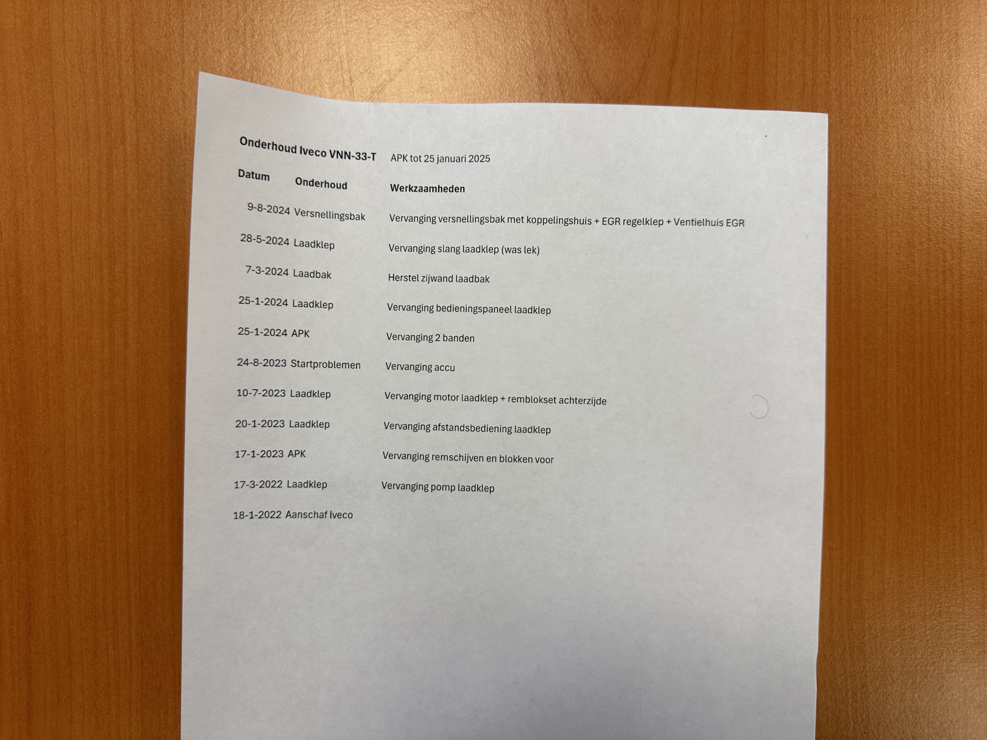 Bij 108000 km heeft de bakwagen bij ons nog een grote onderhoudsbeurt gekregen en recent is hij nog voorzien van een nieuwe bladveer aan de voorzijde.