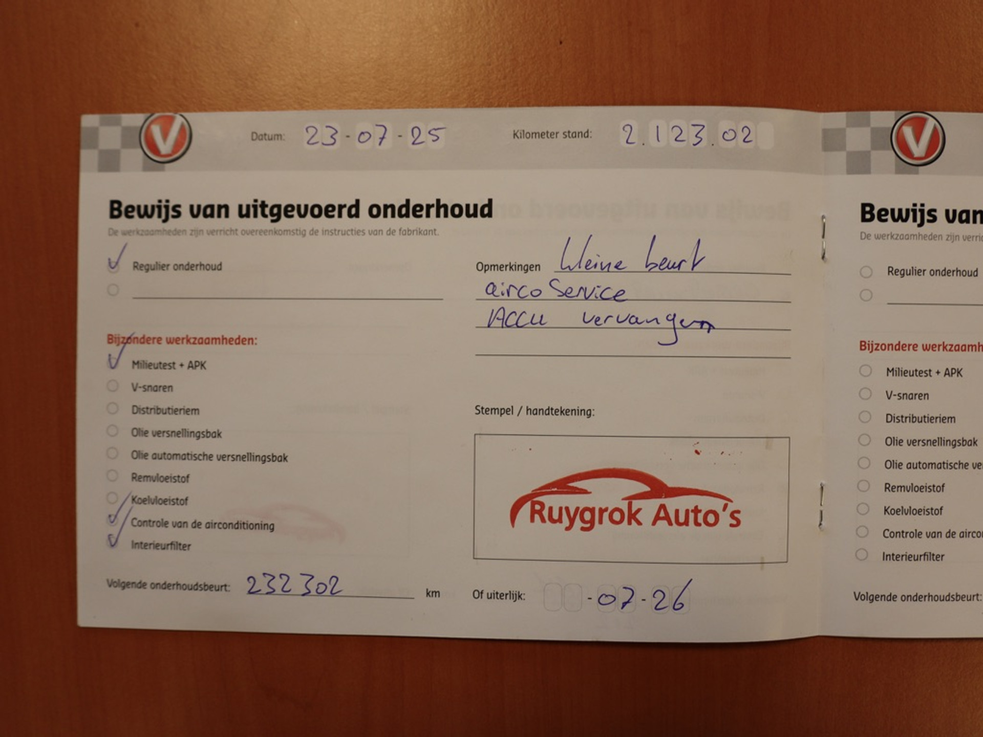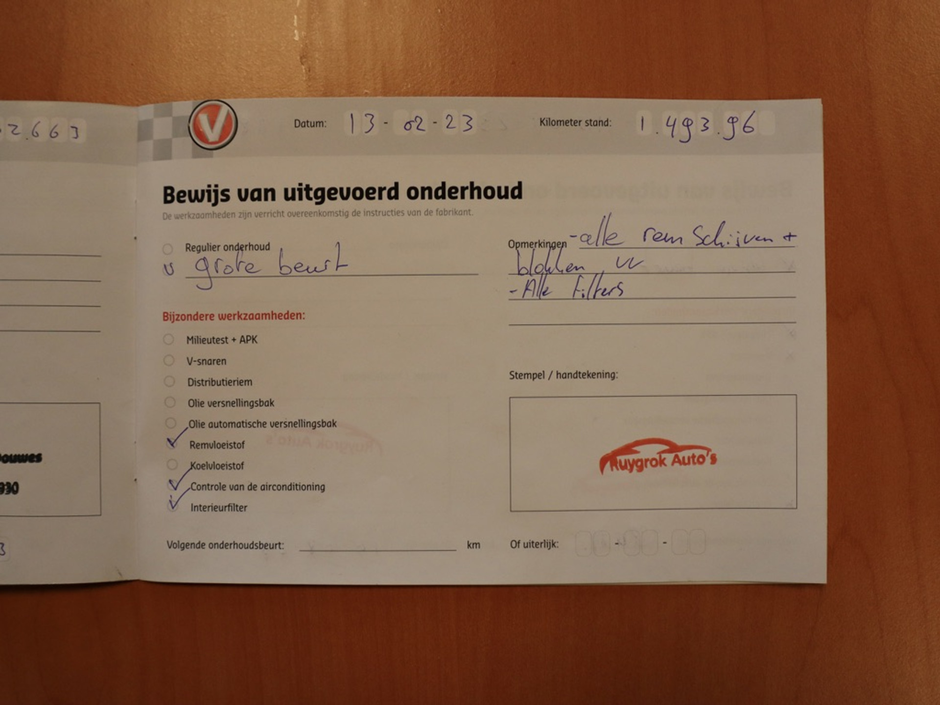 - Onderhoudsboekje aanwezig?
