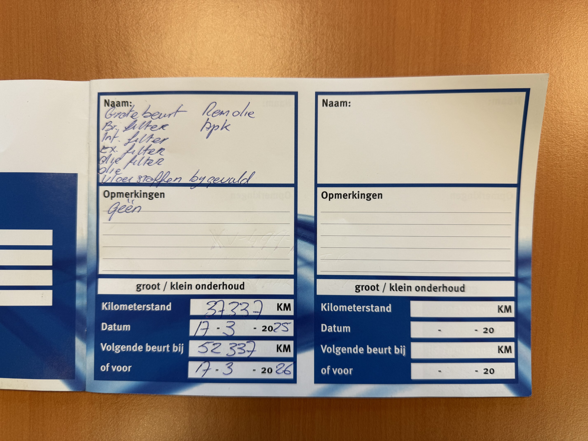- Onderhoudsboekje aanwezig?