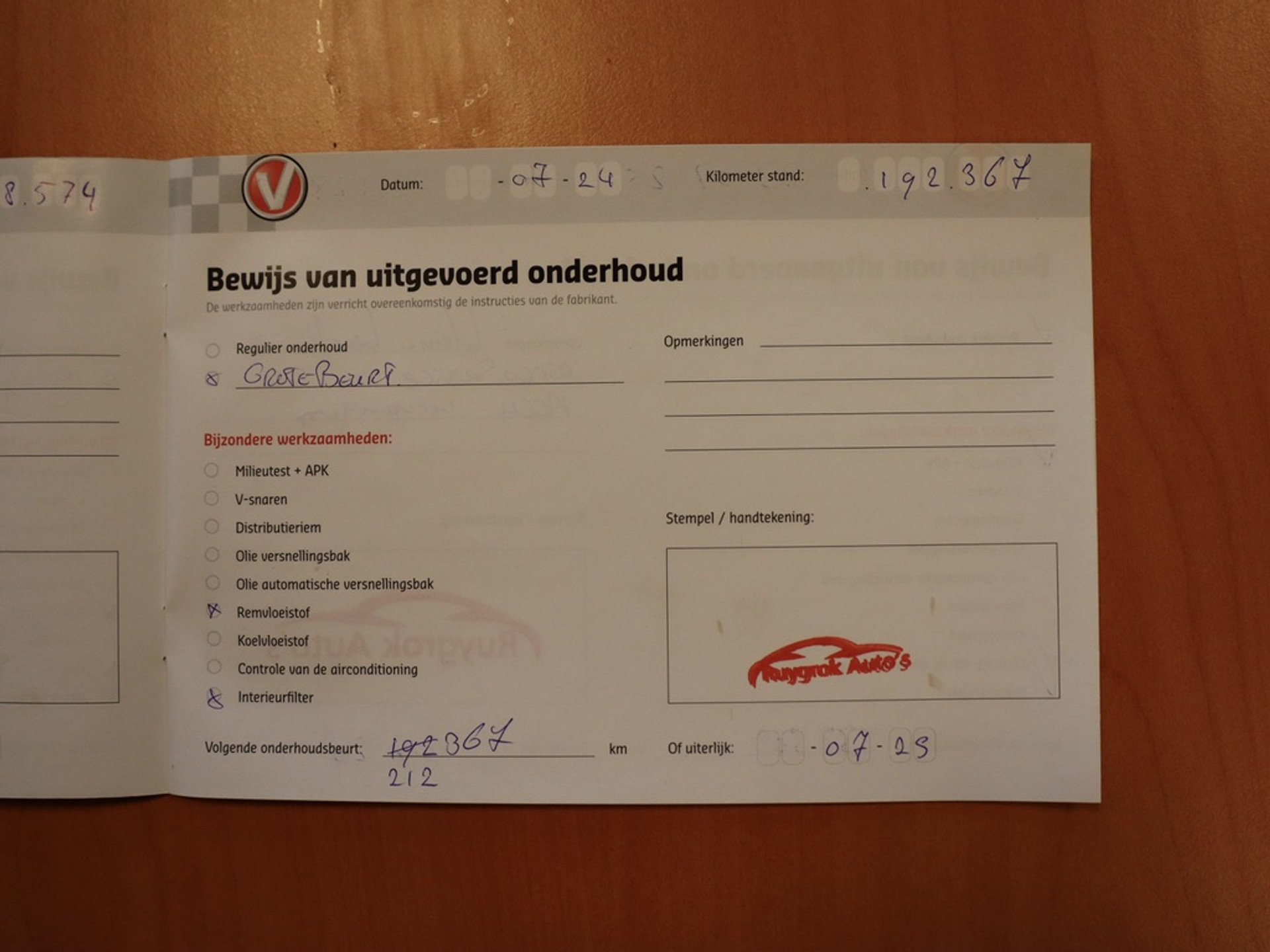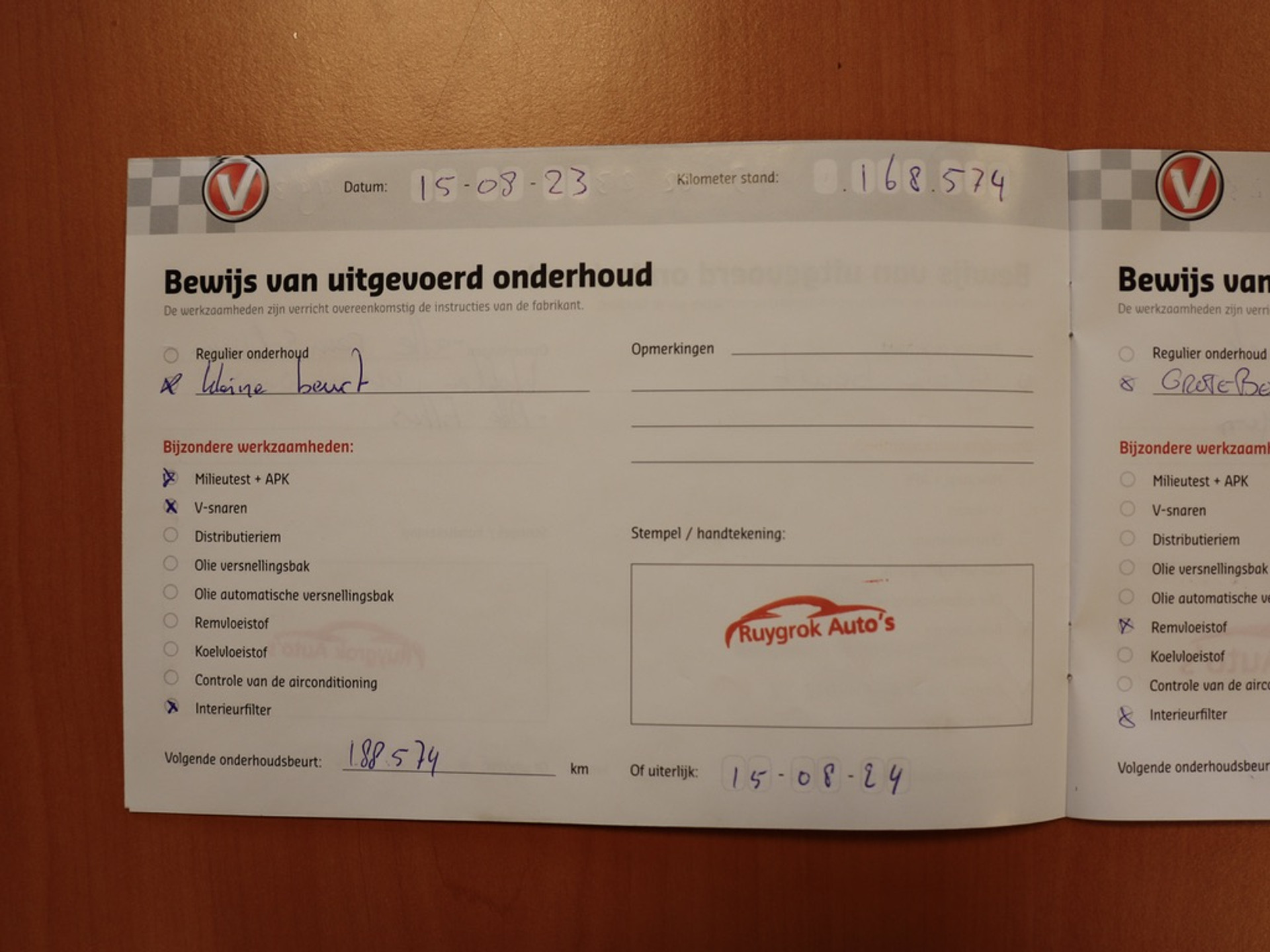 - Onderhoudsboekje aanwezig?