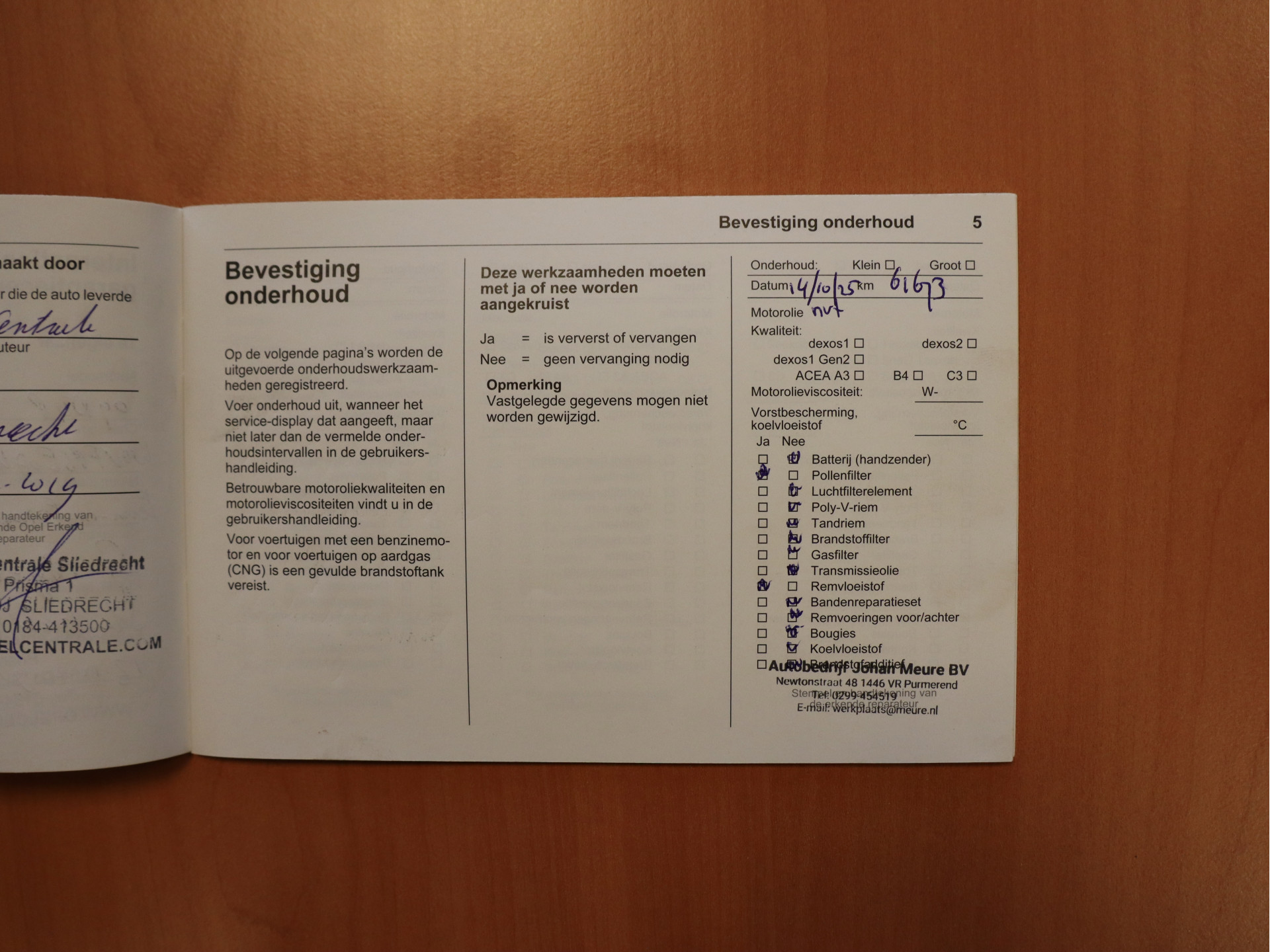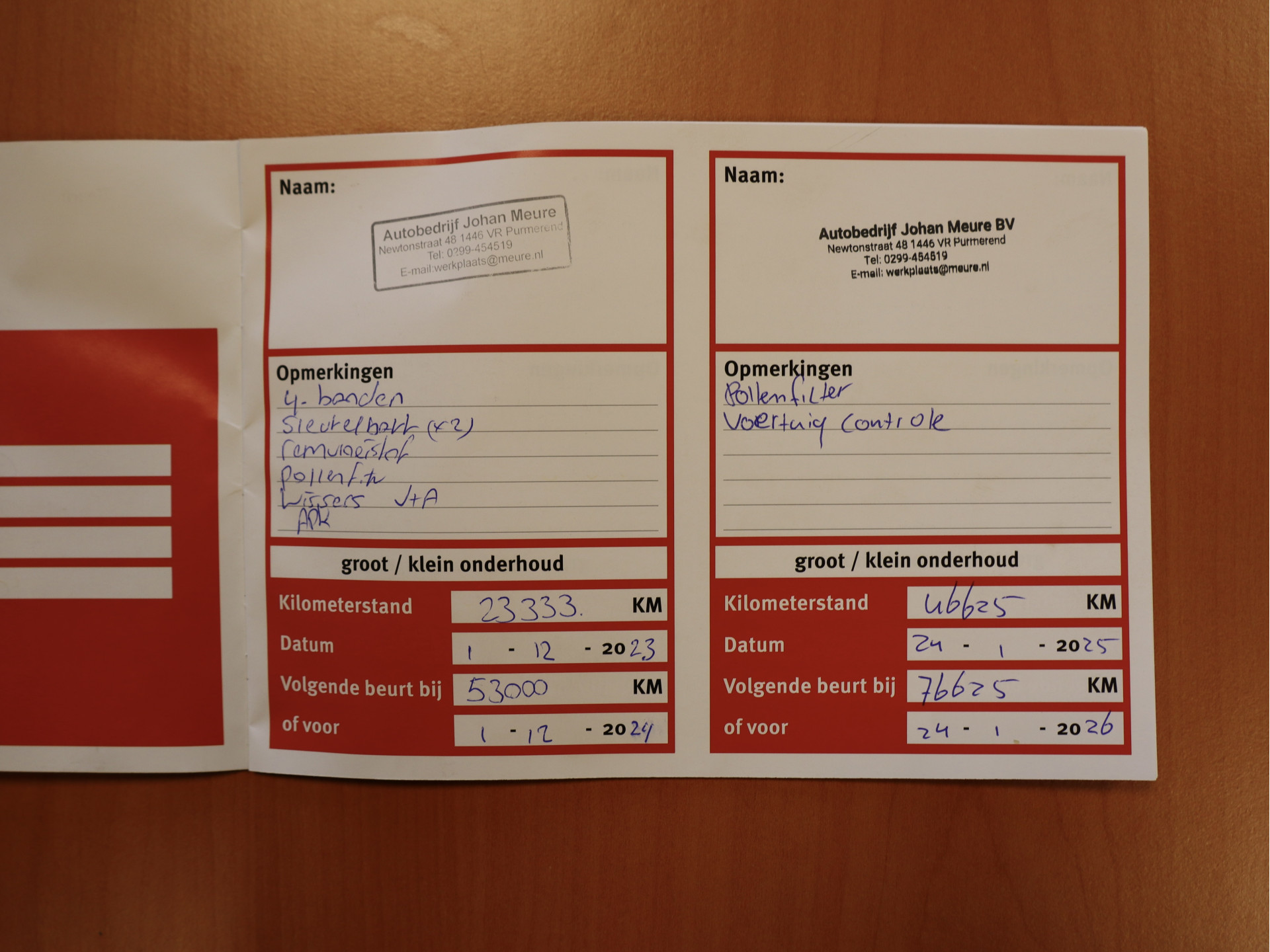 - Onderhoudsboekje aanwezig?